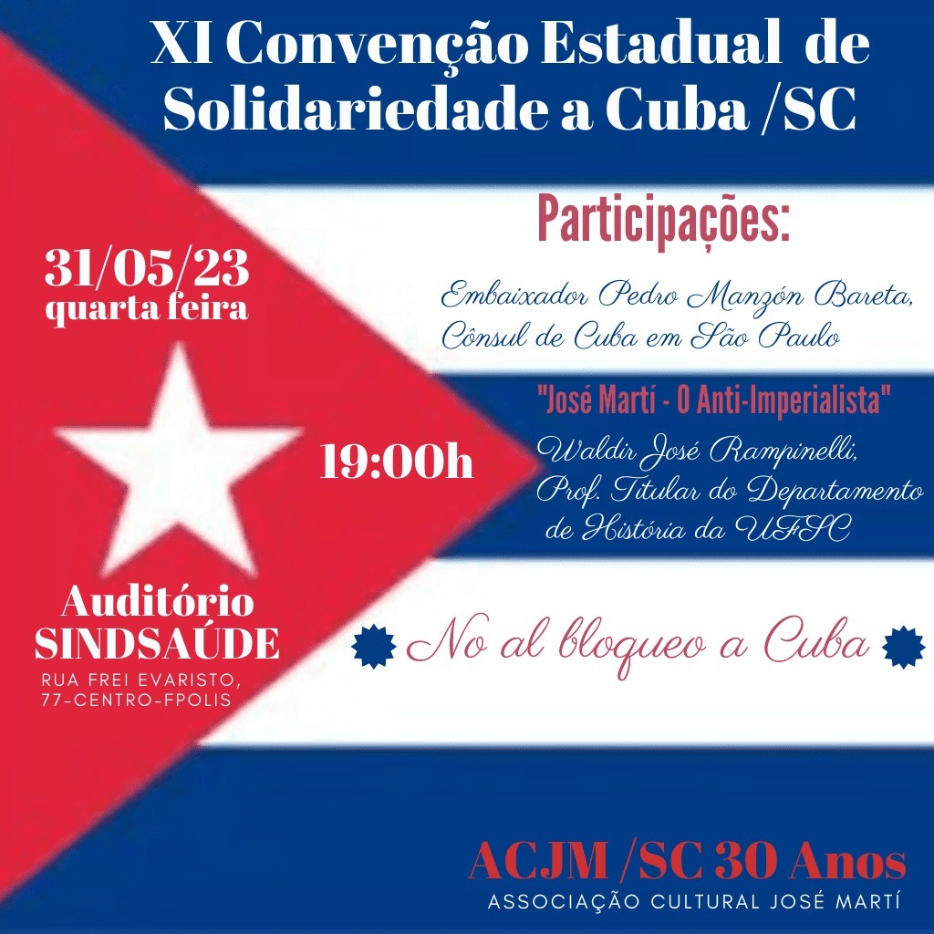 É nesta quarta-feira, dia 31 de maio, a XI Convenção Estadual de Solidariedade a Cuba, com a presença do Consul de Cuba em São Paulo,… Continue a ler »Solidariedade a Cuba